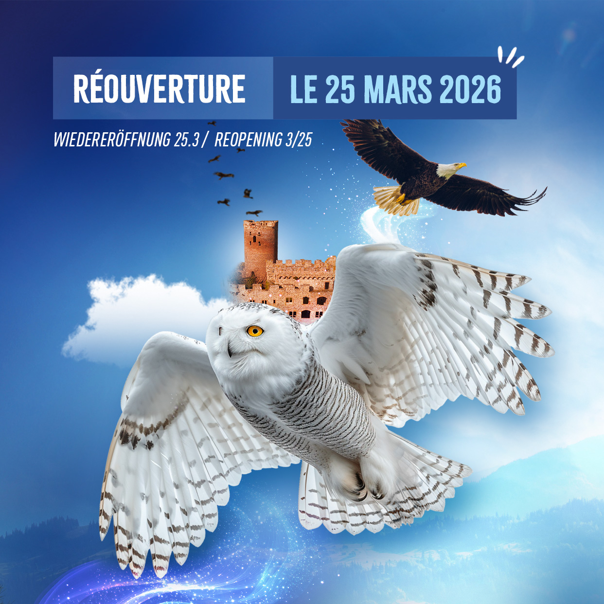 Les portes de la Volerie des Aigles sont fermées. Nous avons déjà hâte de vous retrouver pour de nouvelles aventures en 2026. À très bientôt pour une nouvelle saison pleine d’émotions au cœur du ciel de Kintzheim ! Billetterie