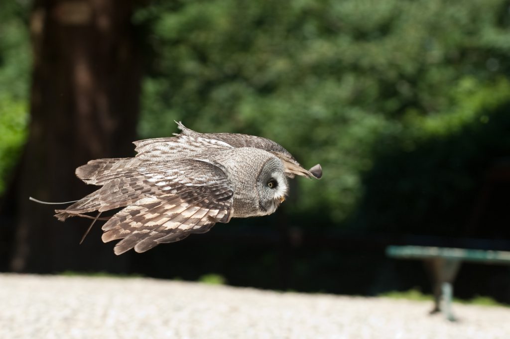 Plus grand chouette du monde, elle a une ouïe très développée qui lui permet de localiser des proies sous une couche de neige de 40cm. Celles-ci seront capturées après un piqué d’une hauteur pouvant atteindre 100 m qui permettra, grâce à la vitesse acquise, d’enfoncer la couche de neige.