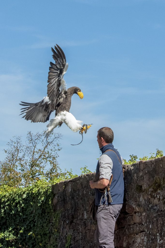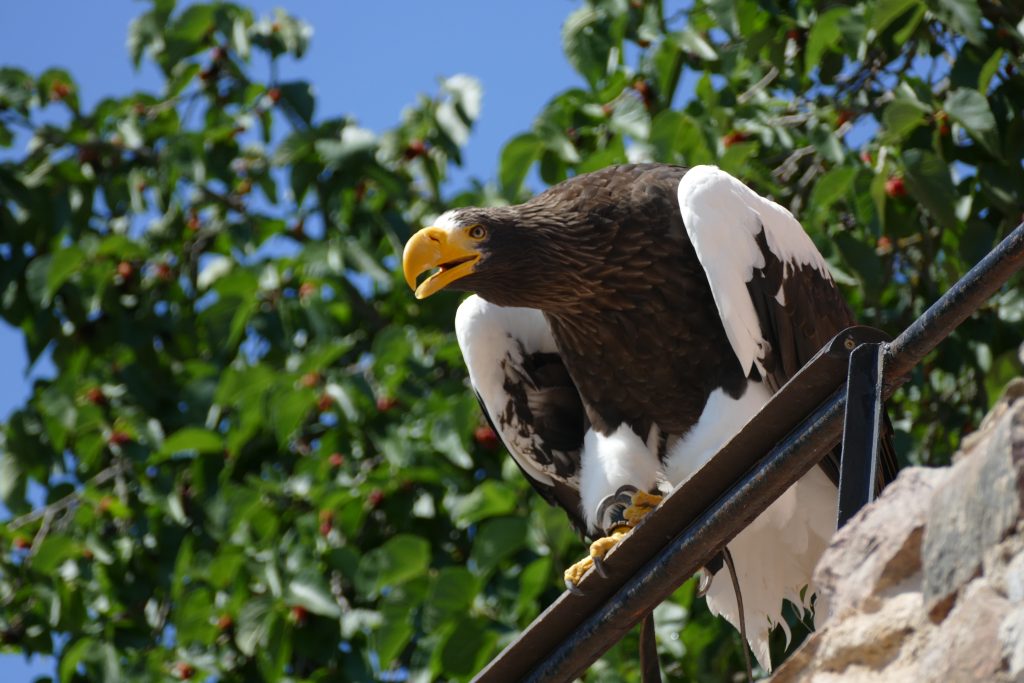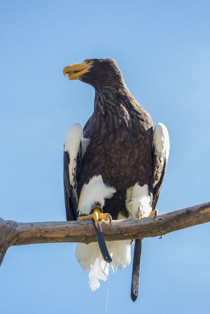 Pouvant atteindre 9 kg, il figure parmi les plus gros aigles du monde, aux côtés de la Harpie féroce d’Amérique du Sud et de l’Aigle des Philippines. Il se nourrit principalement de saumons, qu’il capture dans les rivières ou près des estuaires. Lors des périodes de froid extrême, il se nourrit également de charognes, et son bec proéminent lui permet de découper des carcasses souvent gelées.